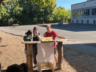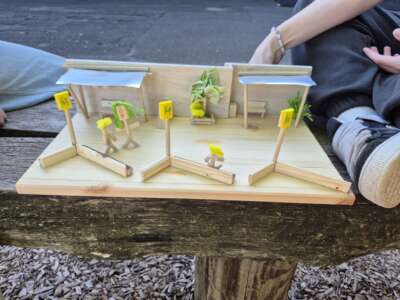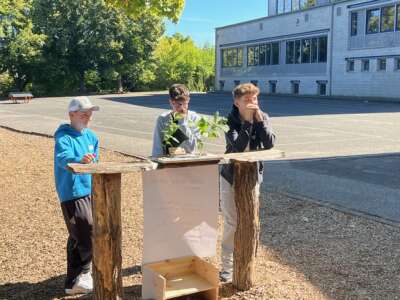 Am ersten Tag entwarfen die Schüler zunächst einen Plan, wie die Bushaltestelle schöner gestaltet werden könnte.