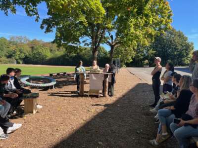 Am 18. und 19. September 2025 fand an unserer Schule im Rahmen der Berufsorientierung ein inspirierendes Projekt der Firma Hornbach und Forever Day One statt. 20 Schülerinnen und Schüler der 8. bis 10. Klassen nahmen an den beiden Tagen teil. Ziel des Projektes war es, einen Ort der Zukunft an unserer Schule zu finden und in einem Modell zu gestalten. Die Schüler hatten sich im Vorfeld den Bereich der Bushaltestelle vor der Schule ausgesucht. Mit Unterstützung von sechs Mitarbeitern von Hornbach und Forever Day One ging es nun an die Planung der Neugestaltung der Bushaltestelle.