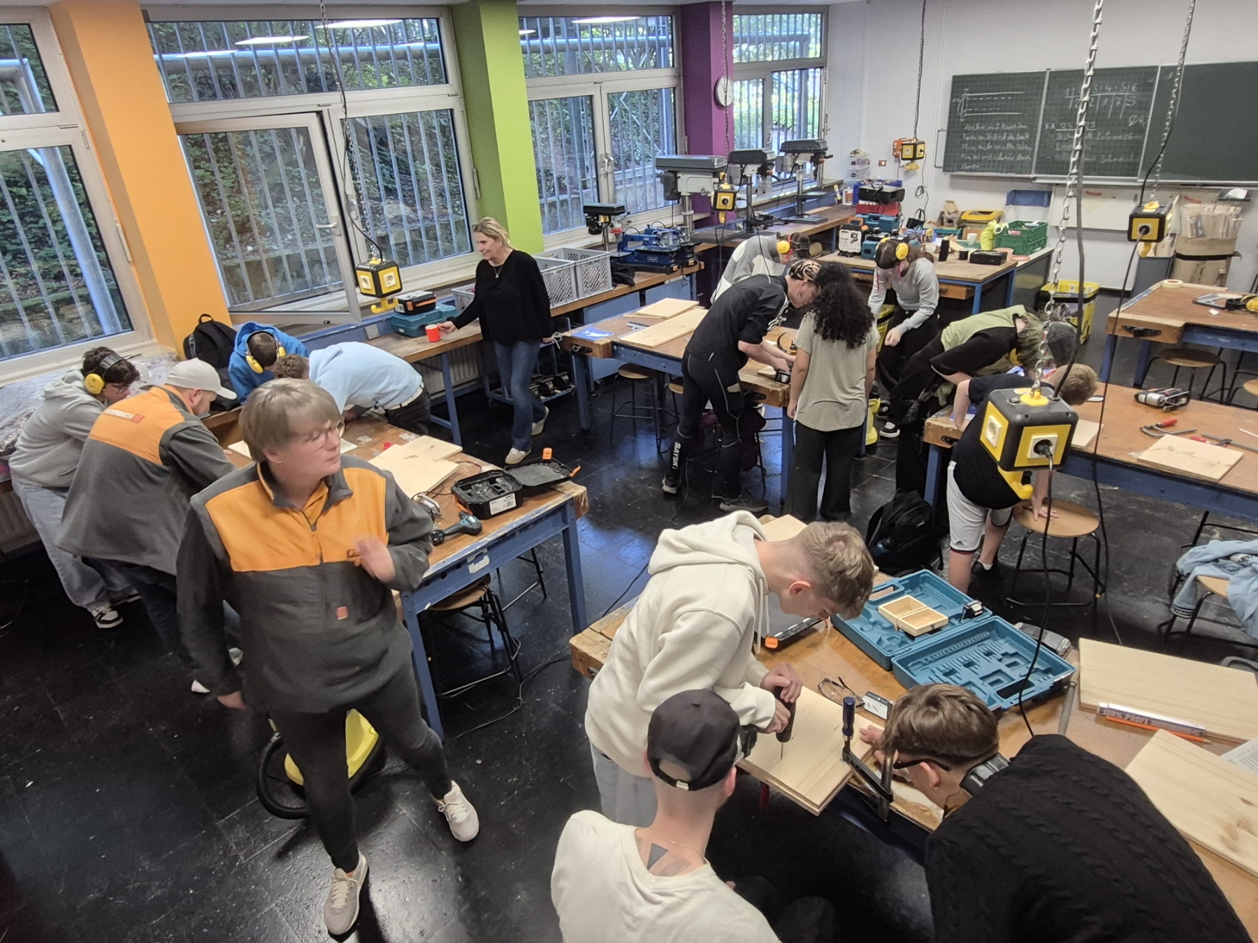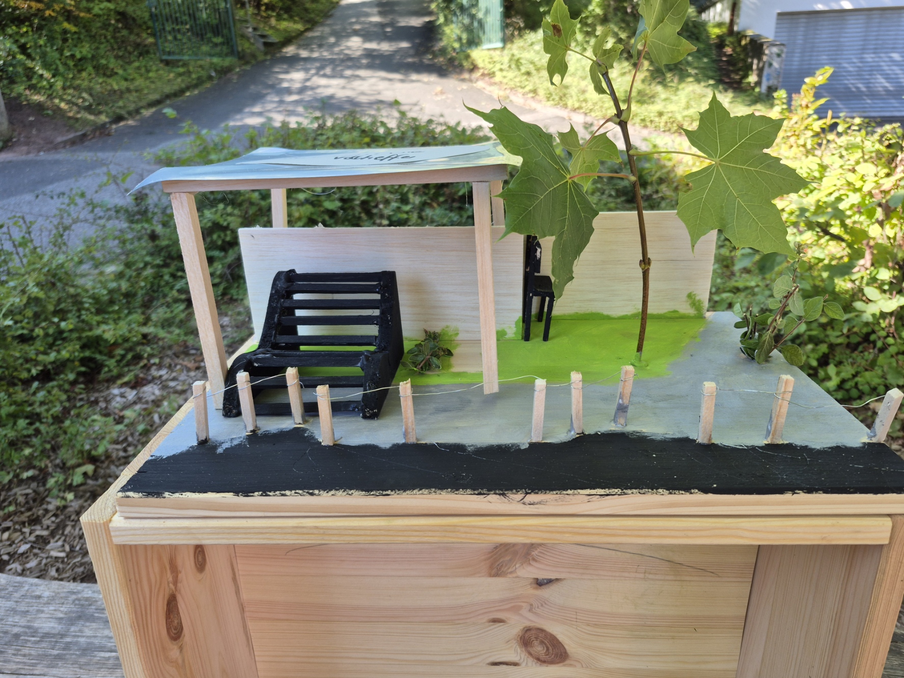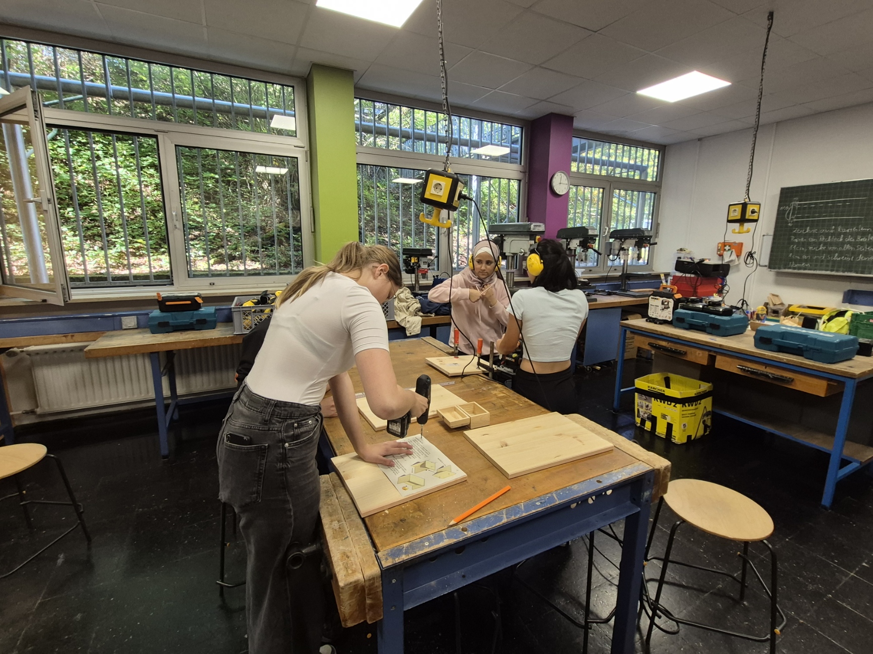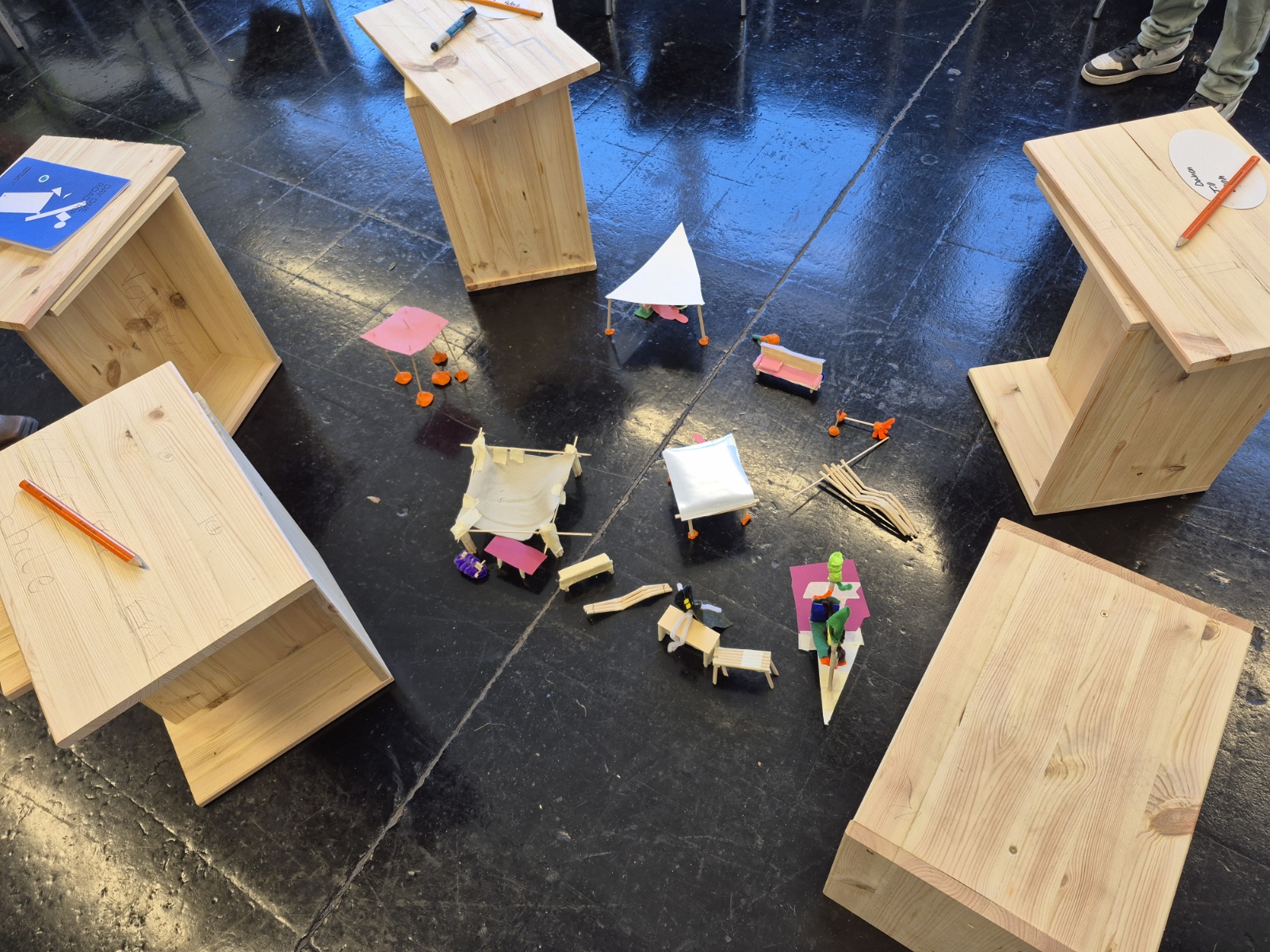 Alle planten und zeichneten mit viel Motivation und Spaß. Anschließend wurden kleine Modelle von Gegenständen gebaut, die die Bushaltestelle verschönern könnten. Außerdem durfte die Schüler in Kleingruppen einen Berliner Hocker bauen.