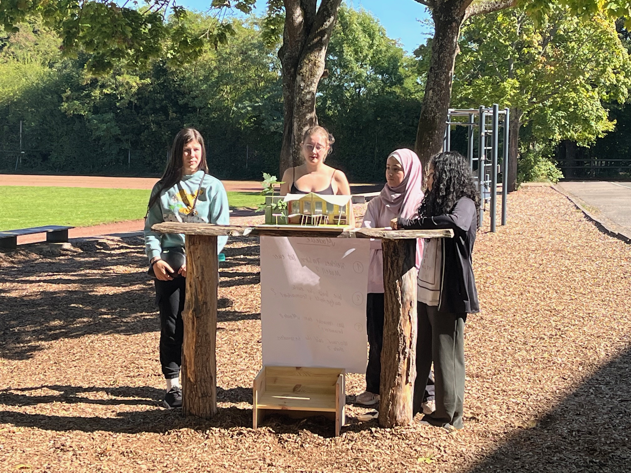 Am Ende des Workshops präsentierte jede Gruppe ihr liebevoll gestaltetes Modell der Schulleitung und dem Rest der Projektgruppe.