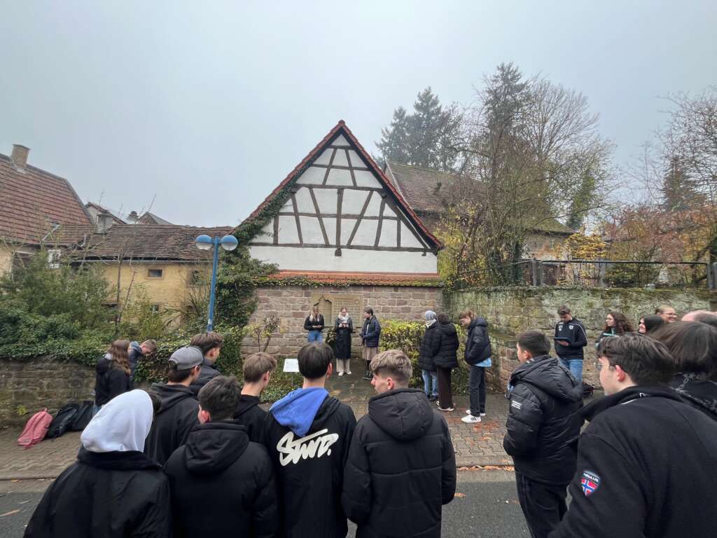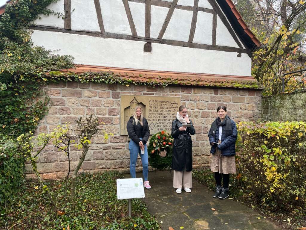 Wie in jedem Jahr trafen sich am 9. November Neunt- und Zehntklässler unserer Schule gemeinsam mit Schülerinnen und Schülern des Wilhelm-Erb-Gymnasiums Winnweiler, um der Opfer der Reichspogromnacht von 1938 zu gedenken. Die Veranstaltung, die inzwischen eine feste Tradition darstellt, soll ein Zeichen gegen das Vergessen setzen und jungen Menschen die Bedeutung historischer Verantwortung näherbringen.