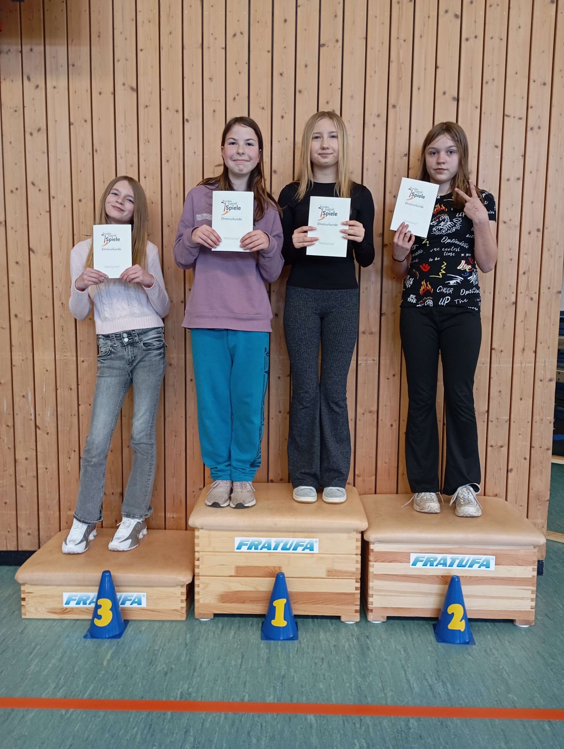In einem spannenden und zugleich fairen Wettkampf konnten insgesamt 17 Turnerinnen und Turner die erforderliche Punktzahl von mindestens 20 erreichen und wurden dafür mit einer Urkunde ausgezeichnet. Besonders hervorzuheben sind die herausragenden Leistungen an der Spitze: Insgesamt fünf Ehrenurkunden wurden vergeben. Dabei belegte Anna Preis mit 25 Punkten den dritten Platz, gefolgt von Abygail Merz mit 26 Punkten auf dem zweiten Rang. Den ersten Platz teilen sich die Jahrgangsbesten Helena Orthöfer und Emilia Louati, die beide mit der maximal erreichbaren Punktzahl von 27 ein beeindruckendes Ergebnis erzielten.
